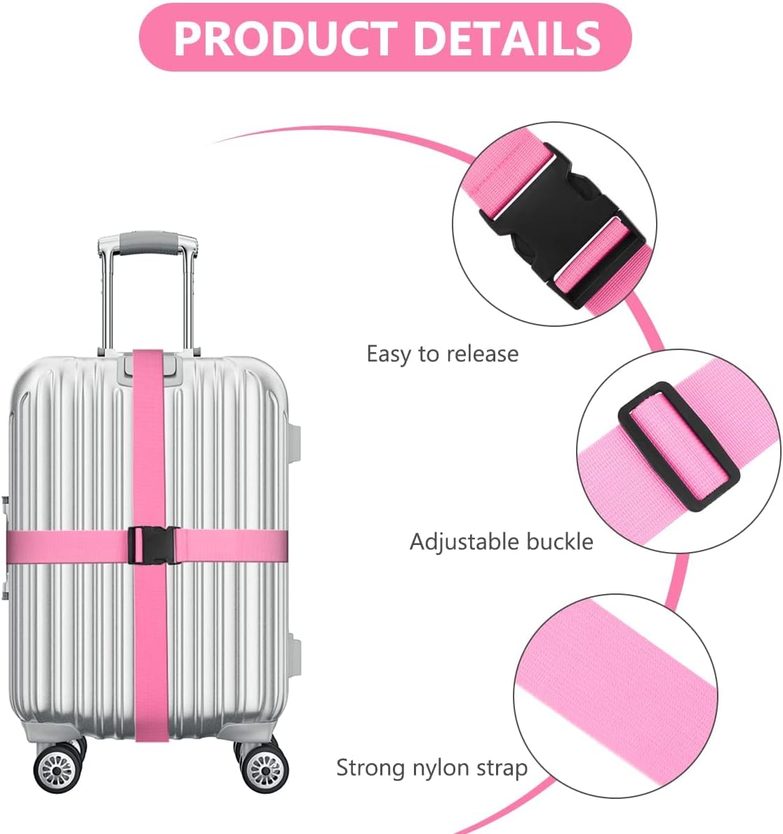 4 pack Luggage Straps with Luggage Tags, Adjustable Packing Belts for Suitcases Security Non-Slip Travel Belt Travel Accessories.– The luggage strap can well protect your luggage, prevent accidental opening of the luggage during travel, and protect the safety of all items.– Bright colors, stylish and practical, easy to identify luggage quickly.– Give a luggage tag with an information card to record your identity information and avoid picking up your luggage by mistake.Specifications:Material: NylonLuggage Strap Size: length: 180-188cm (Adjustable), width: 5cm.Color: Bright colors to identify travel bags.Packing: white boxThe Package Includes:4 Pieces Of Adjustable Luggage Strap*2Pcs Luggage Tag