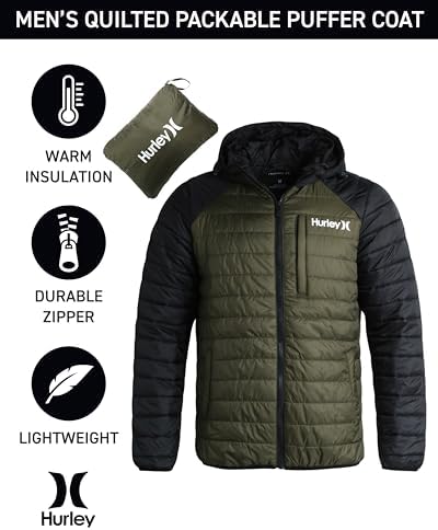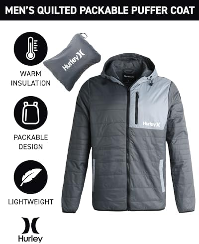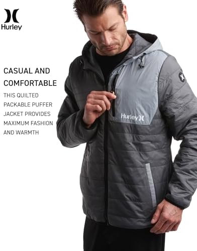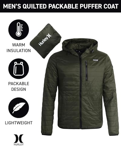 Hurley Men’s Jacket – Balsam Lightweight Packable Puffer Coat – Weather Resistant Outerwear Windbreaker Coat for Men (M-XL)