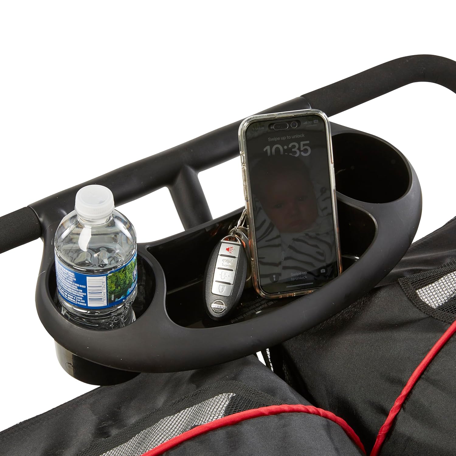 EXTRA STORAGE: Include one parent tray with two drink holders, removable child trays with dual cup and juice box holder. Two large and easy to access storage basket holds all baby’s necessities