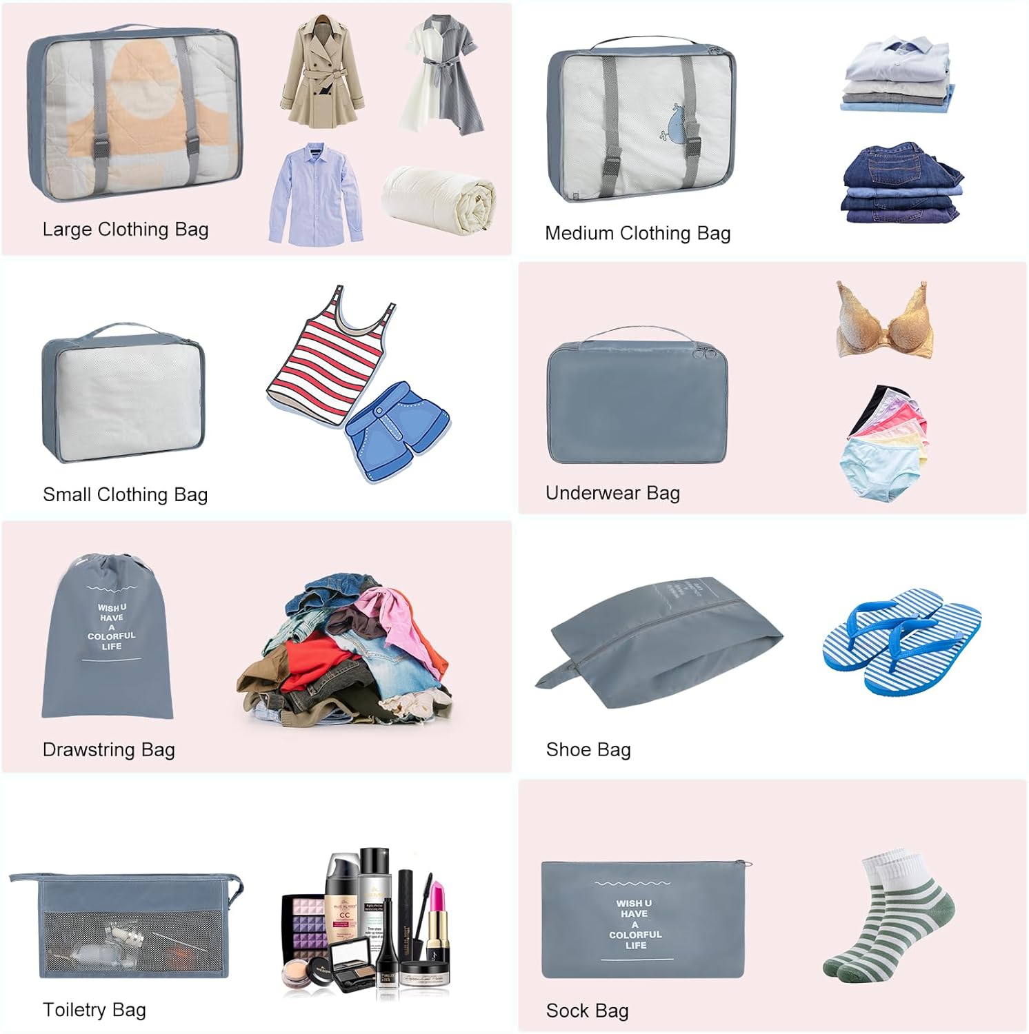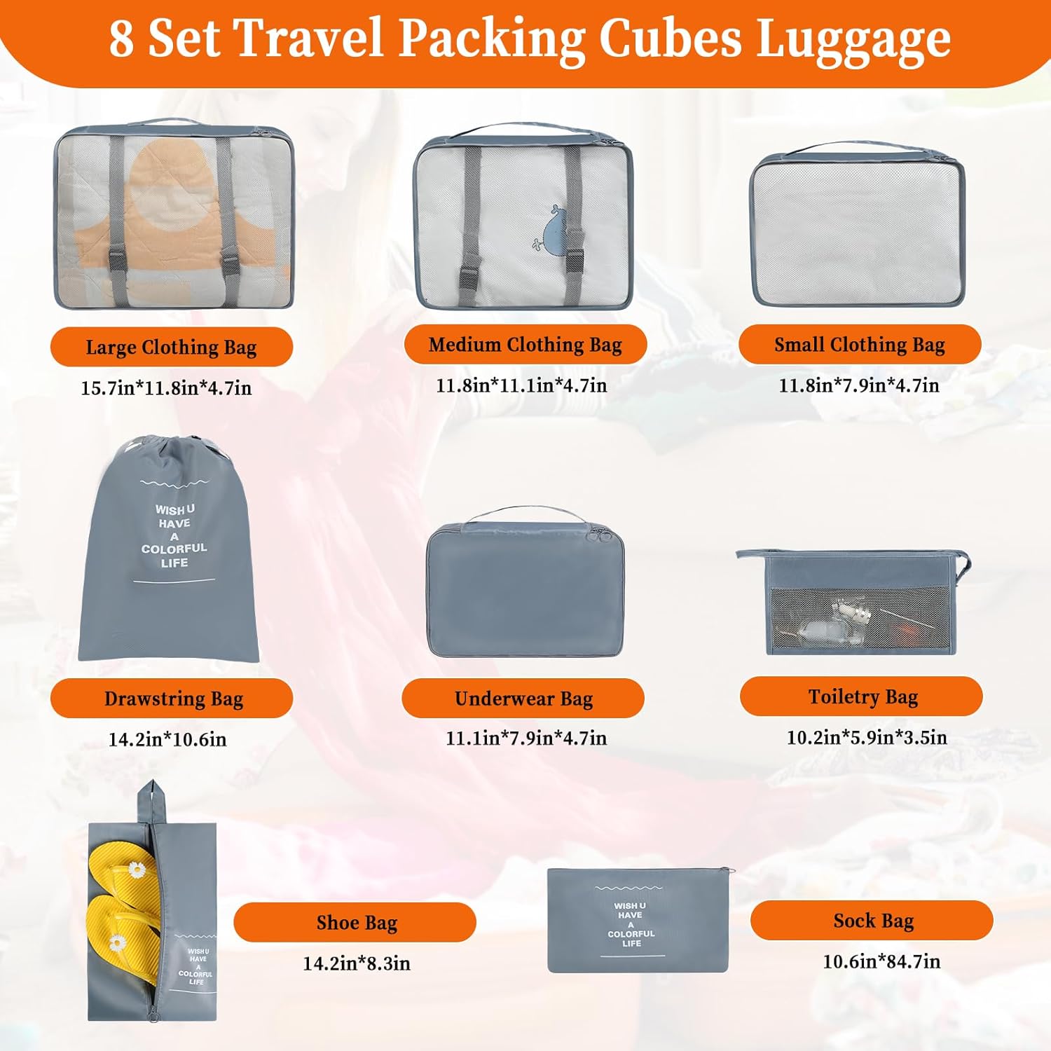 labato 8 Set Luggage Packing Cubes, Waterproof Suitcase Packing Cubes for Travel, Travel Carry on Packing Cubes, Suitcase Bags Organizer, Luggage Packing Organizers for Travel Accessories(Grey)