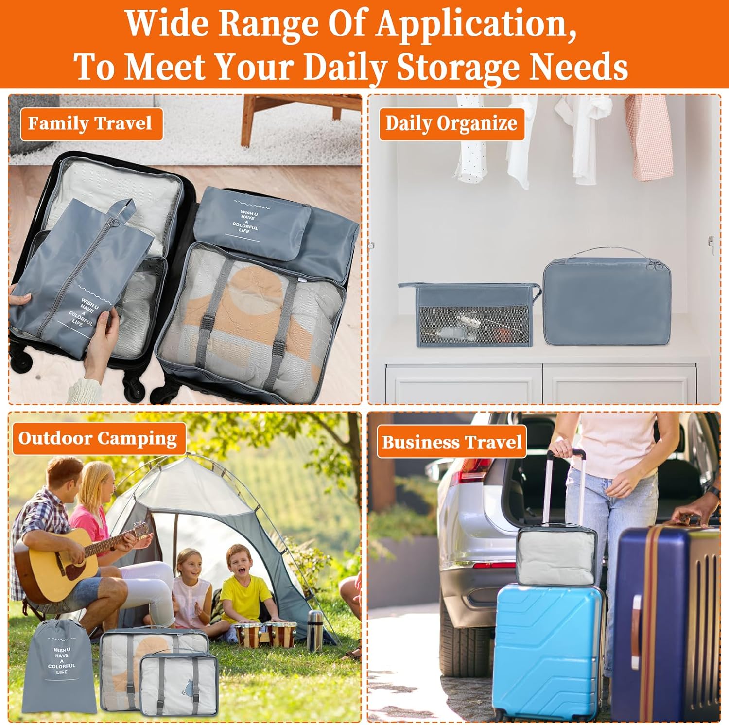 ✈️✈️【Keep Everything in Order!】– Comes with 3 Clothing Bags(L/M/S), 1 Underwear Bag, 1 Drawstring Bag, 1 Shoe Bag, 1 Toiletry Bag and 1 Sock Bag. (Please kindly check the picture for detailed sizes.) Our Packing Cubes for Travel easily categorize your travel accessories in order, keep your suitcase neat and organized at all times!
