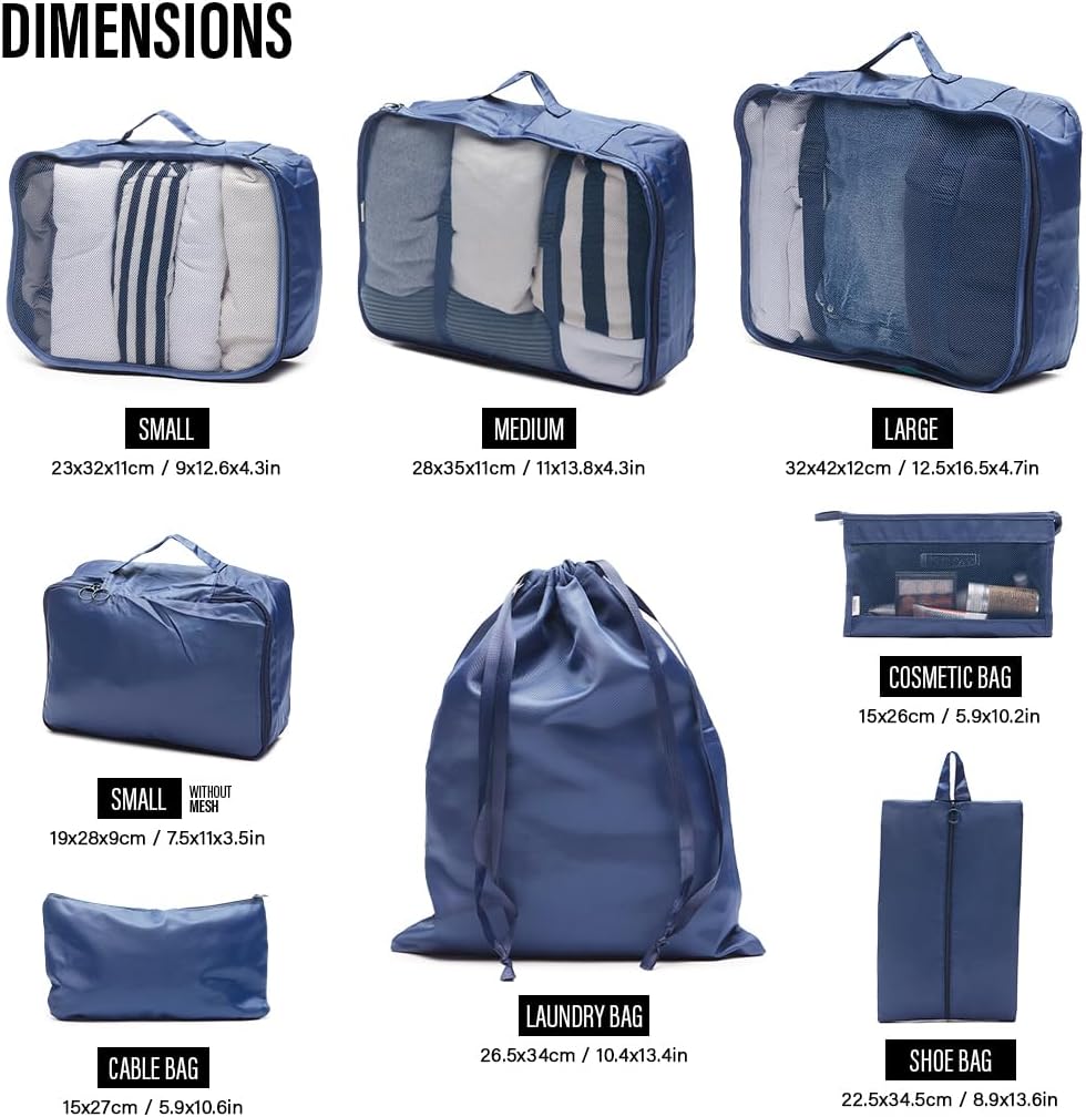 Lilito 8 Set Packing Cubes For Travel, Suitcase Organizer Lightweight, Travel Essentials for Carry on, Luggage Organizer Bag Accessories, Bag and Suitcase, Multi-Size, Double Zipper Design (Blue)