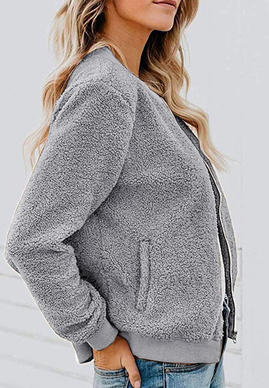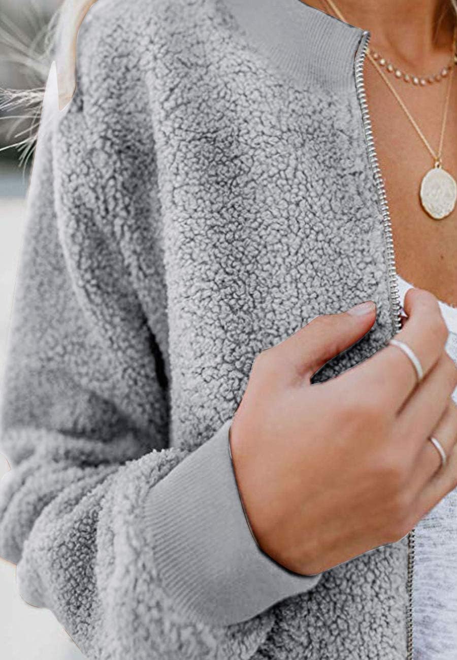 MIROL Women’s Sherpa Fleece Jacket Faux Fuzzy Long Sleeve Casual Zip Up Bomber Coat