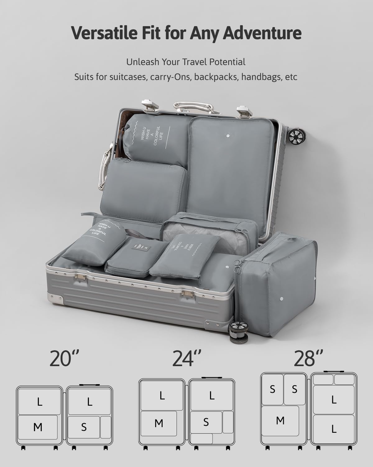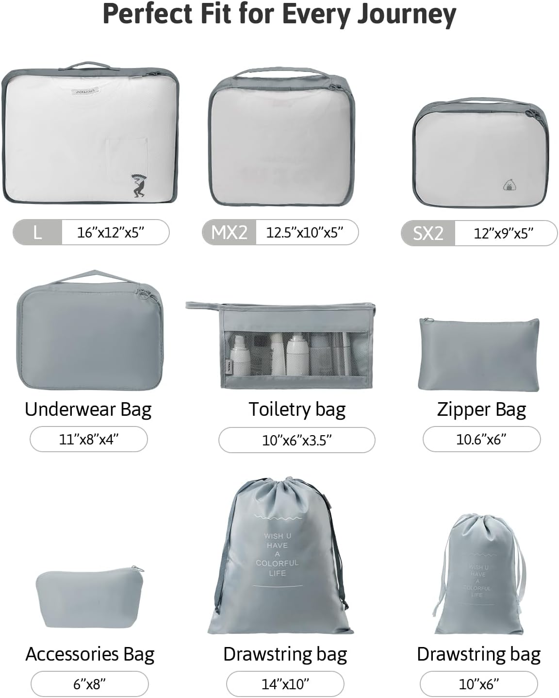 OrgaWise Luggage Organizer Bag 9 Set, Suitcase Cube Organizer for Carry ons, Travel Packing Organizers Cubes for Travel Essentials Packing, Travel Accessories (11PCS-Grey)