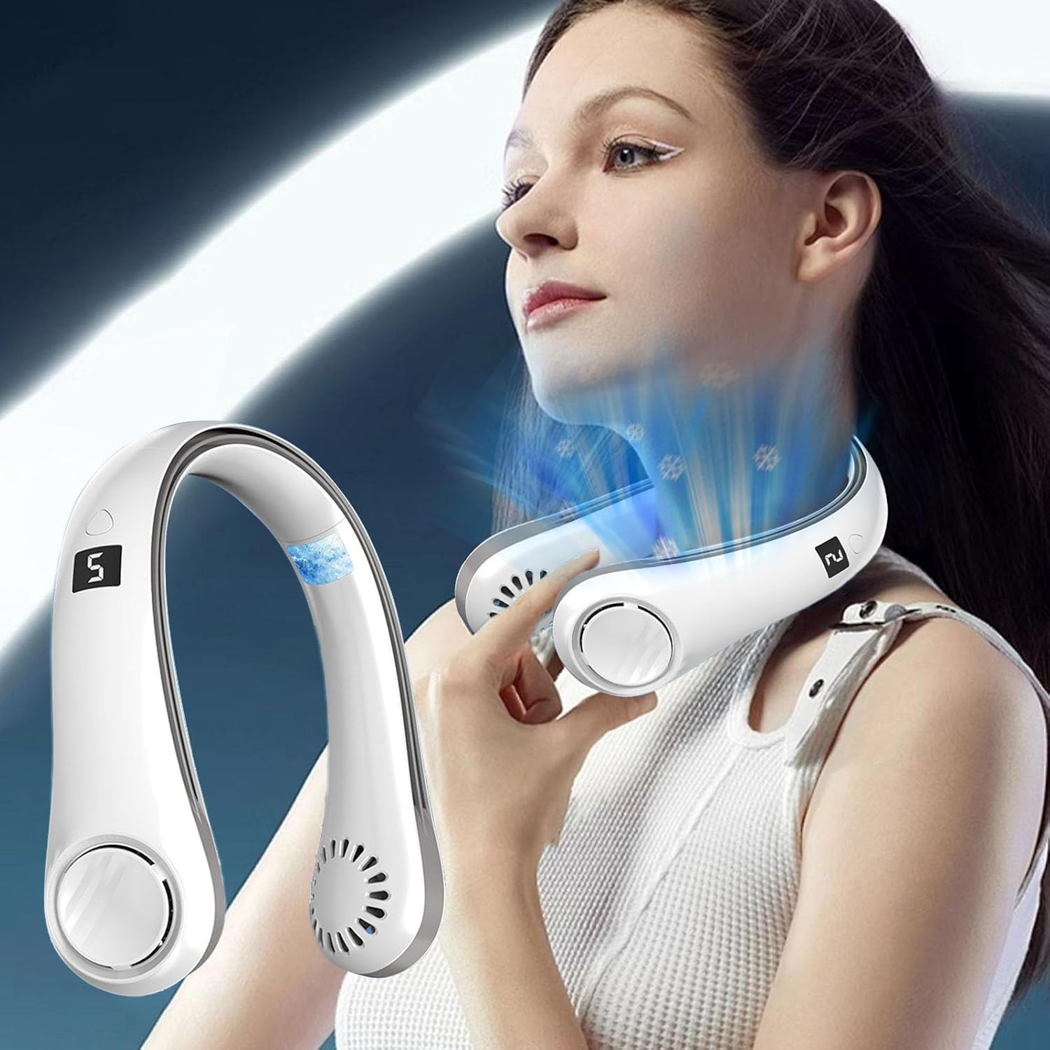 【Hands free Design & Fashionable】Hand free hanging fan was designed as a headphone to free your hands anywhere; The fashion style makes you look cool and you can take it anywhere in hot weather.