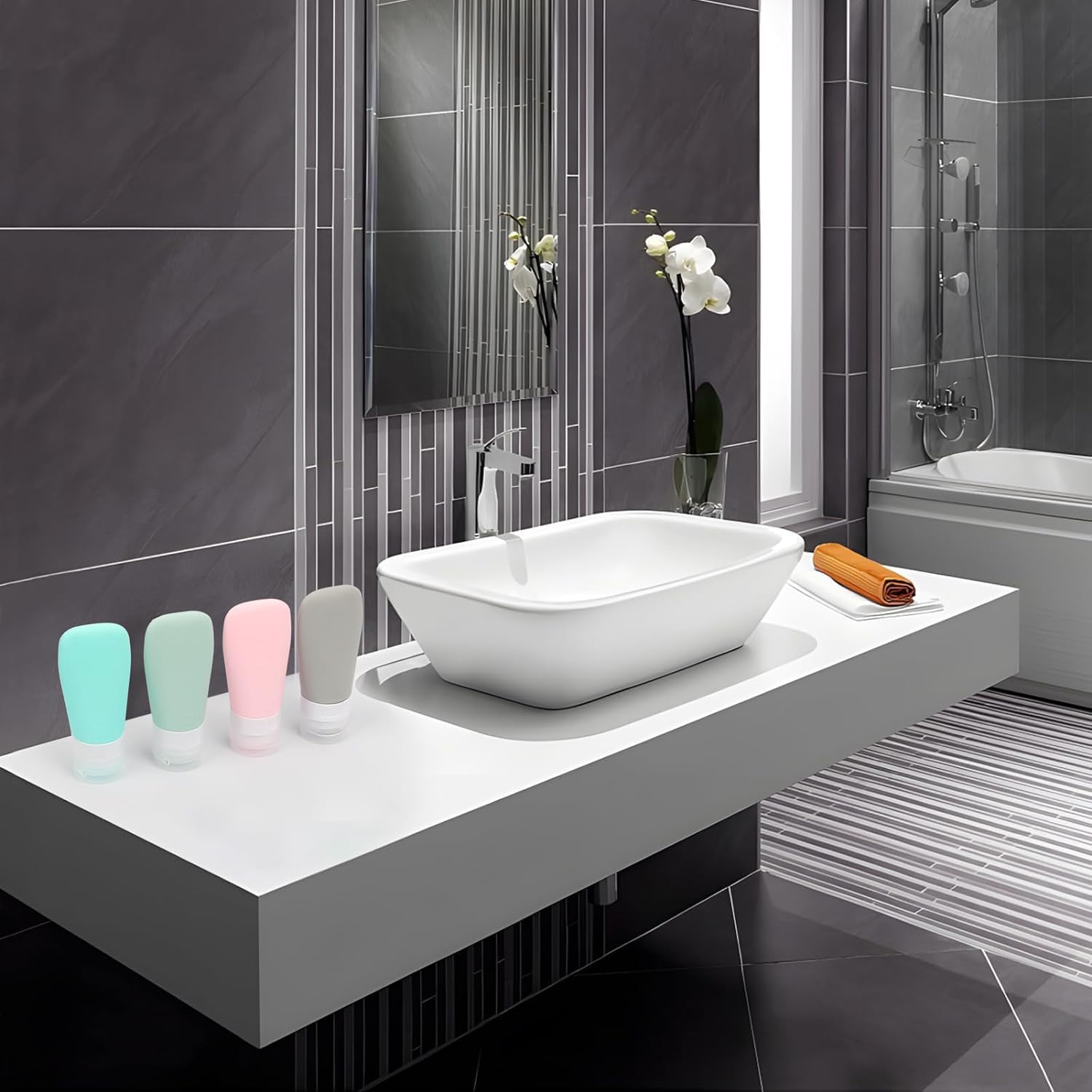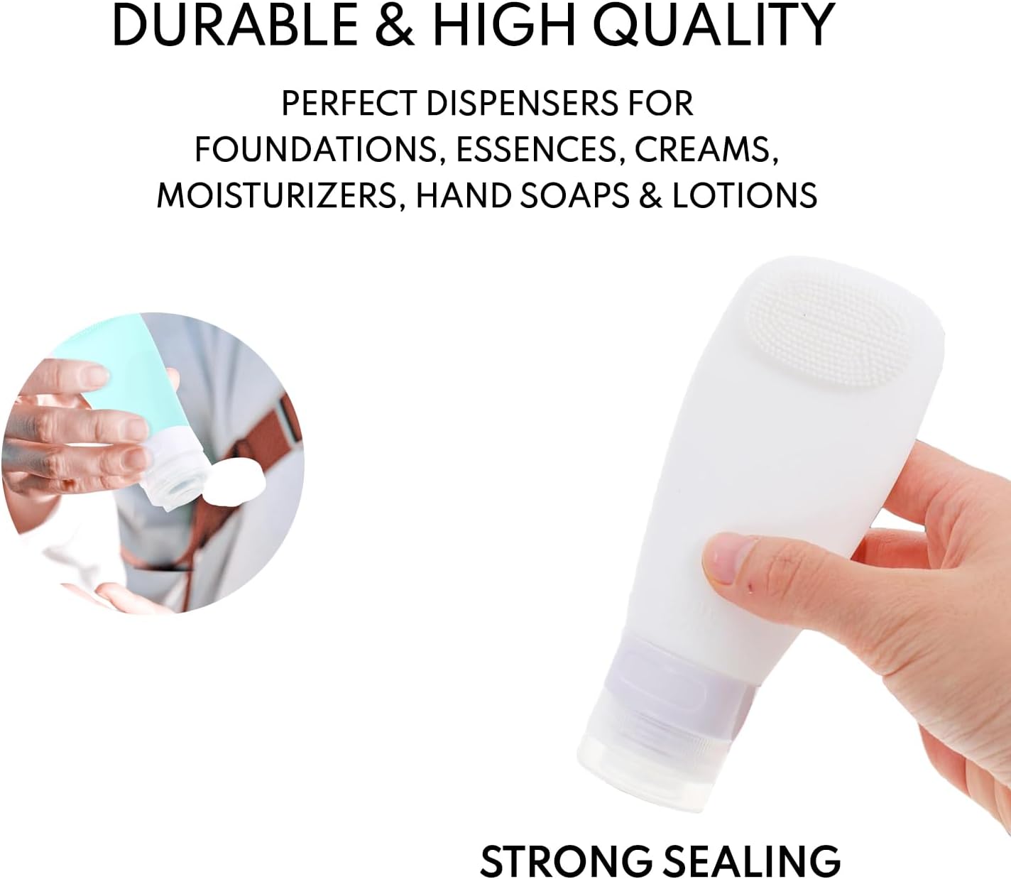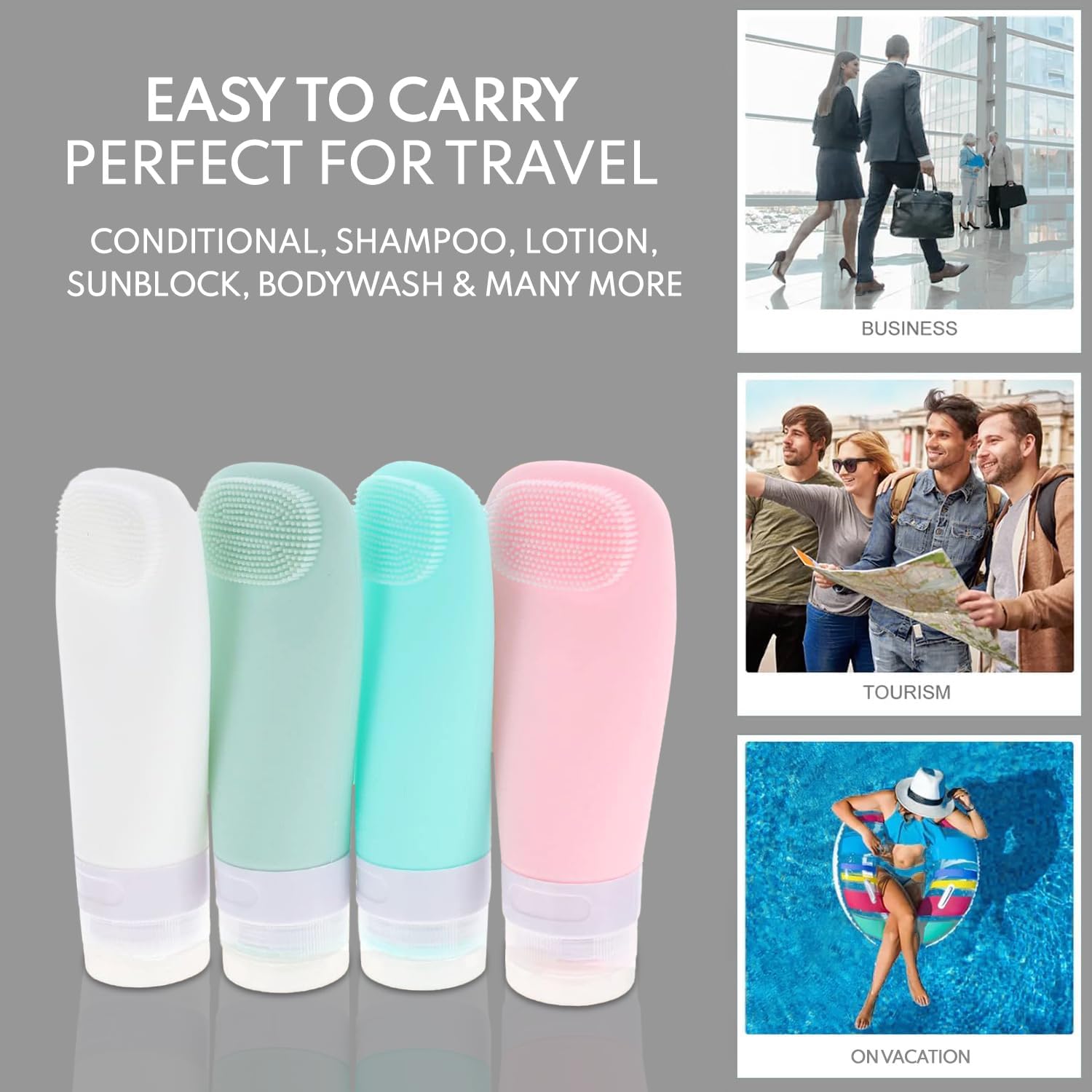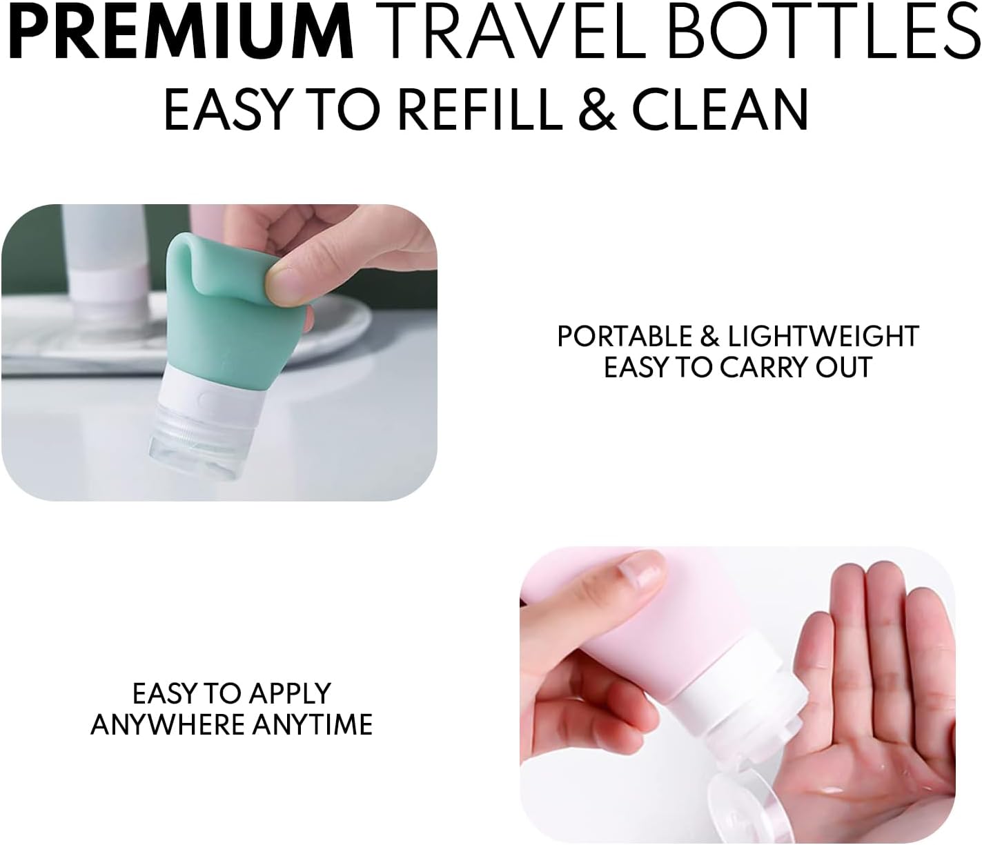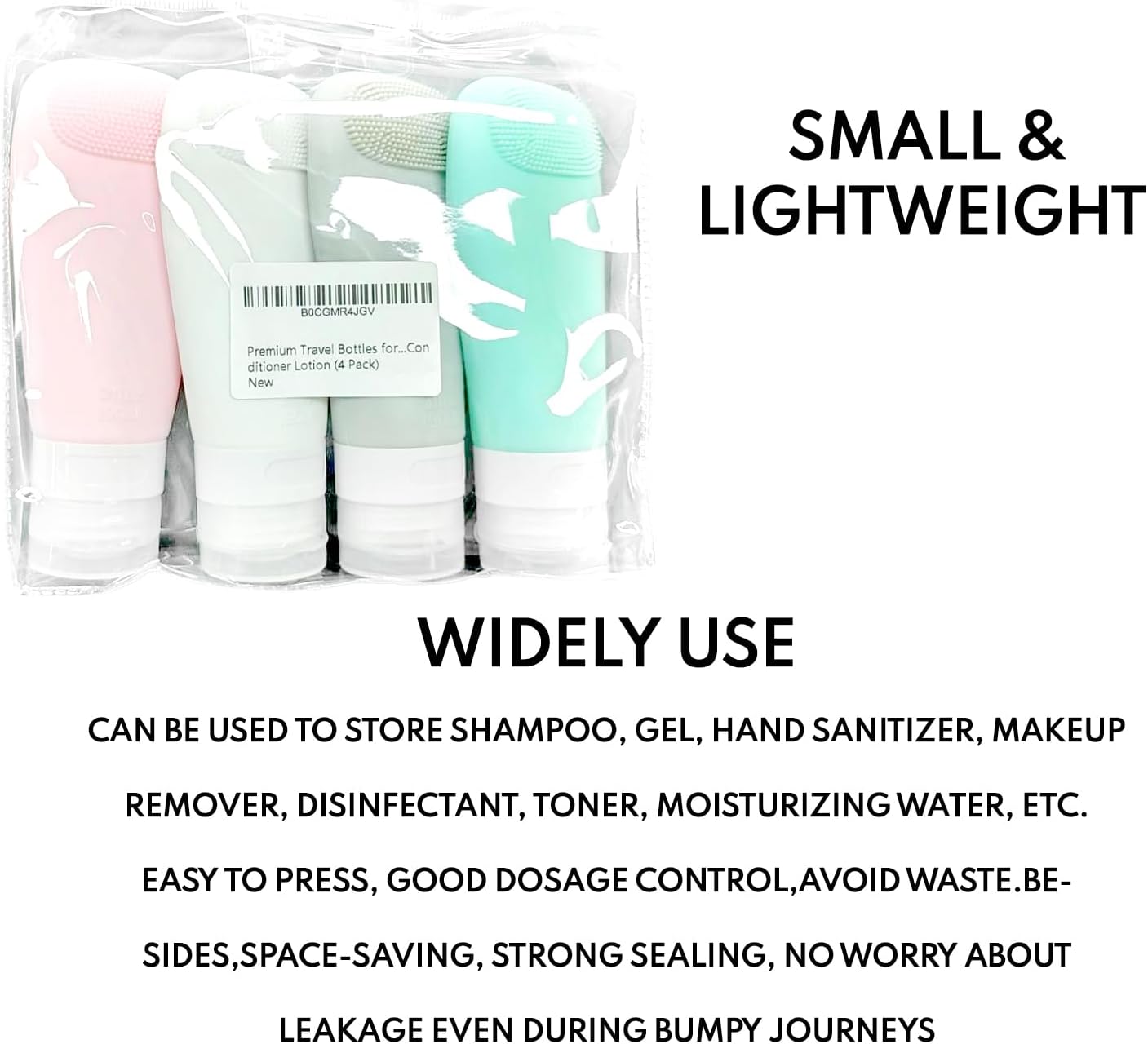 Premium Travel Bottles for Toiletries, Tsa Approved 3oz Travel Size Containers BPA Free Leak Proof Refillable Liquid Silicone Squeezable Travel Accessories for Shampoo Conditioner Lotion (4 Pack)