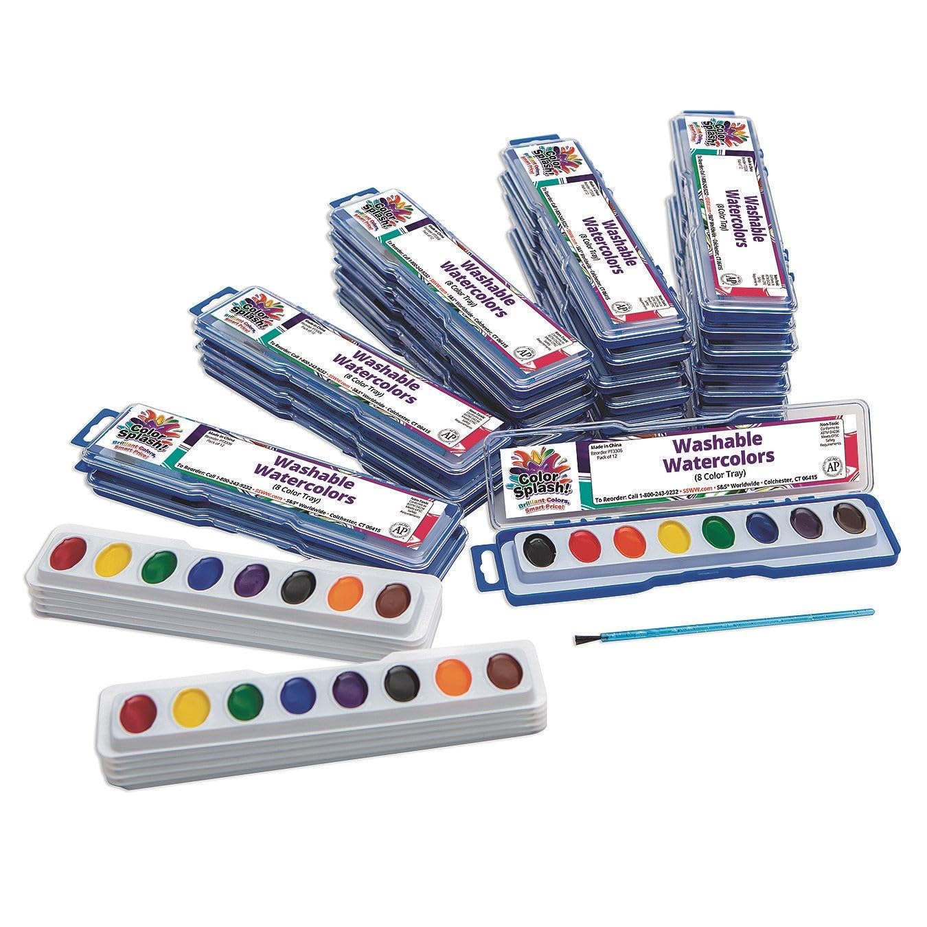 S&S Worldwide Color Splash! Watercolor Mega Pack, 8-Color Trays, Includes 24 Paint Trays w/Brushes plus 12 Refills. Great For All Watercolor Painting, Perfect For Groups of Kids or Adults Pack of 36