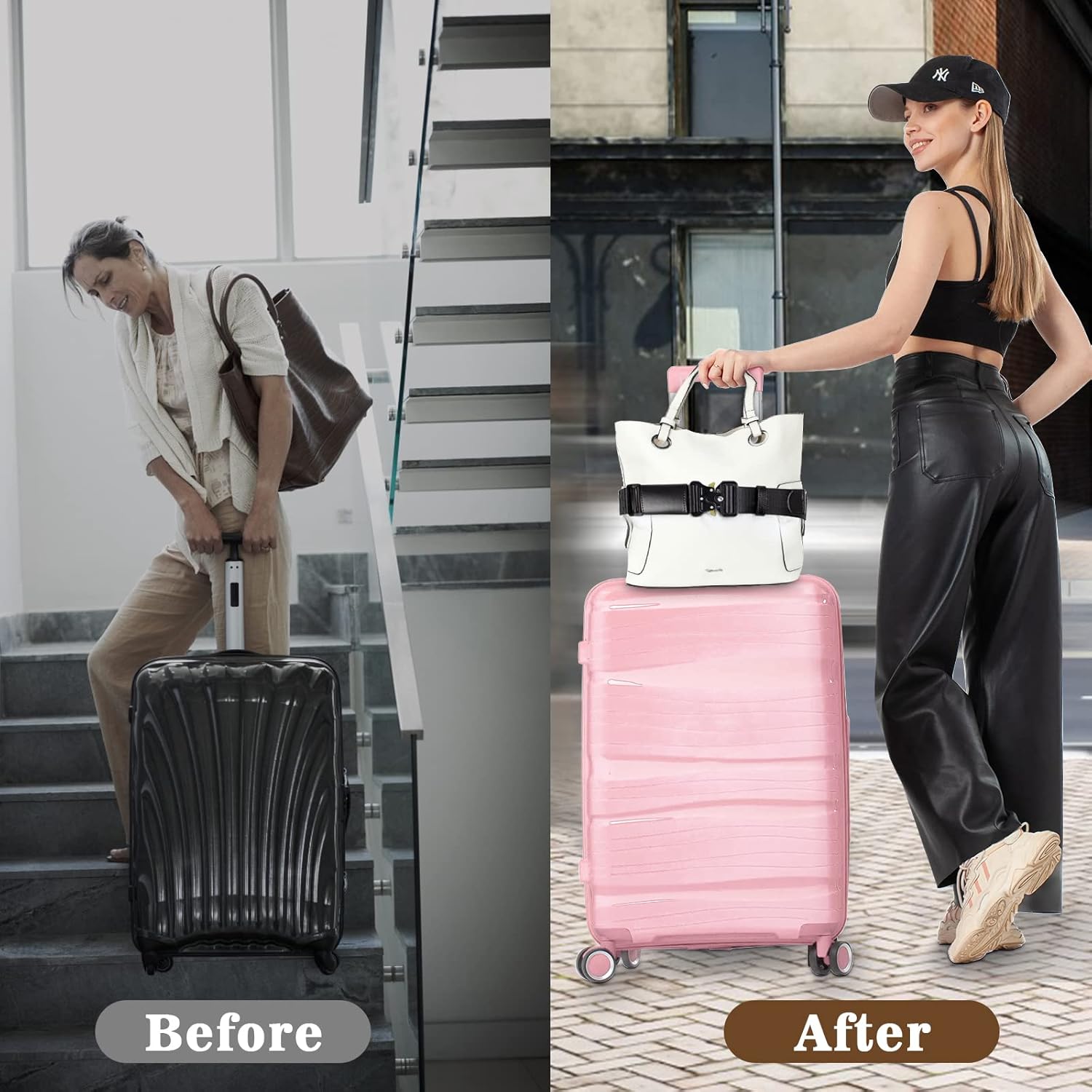 【Travel Hands-Free】luggage strap for carry on bag secure your personal bag to your carry-on or checked luggage handle, so you can maneuver through the airport hands-free. Use travel straps for luggage easier.