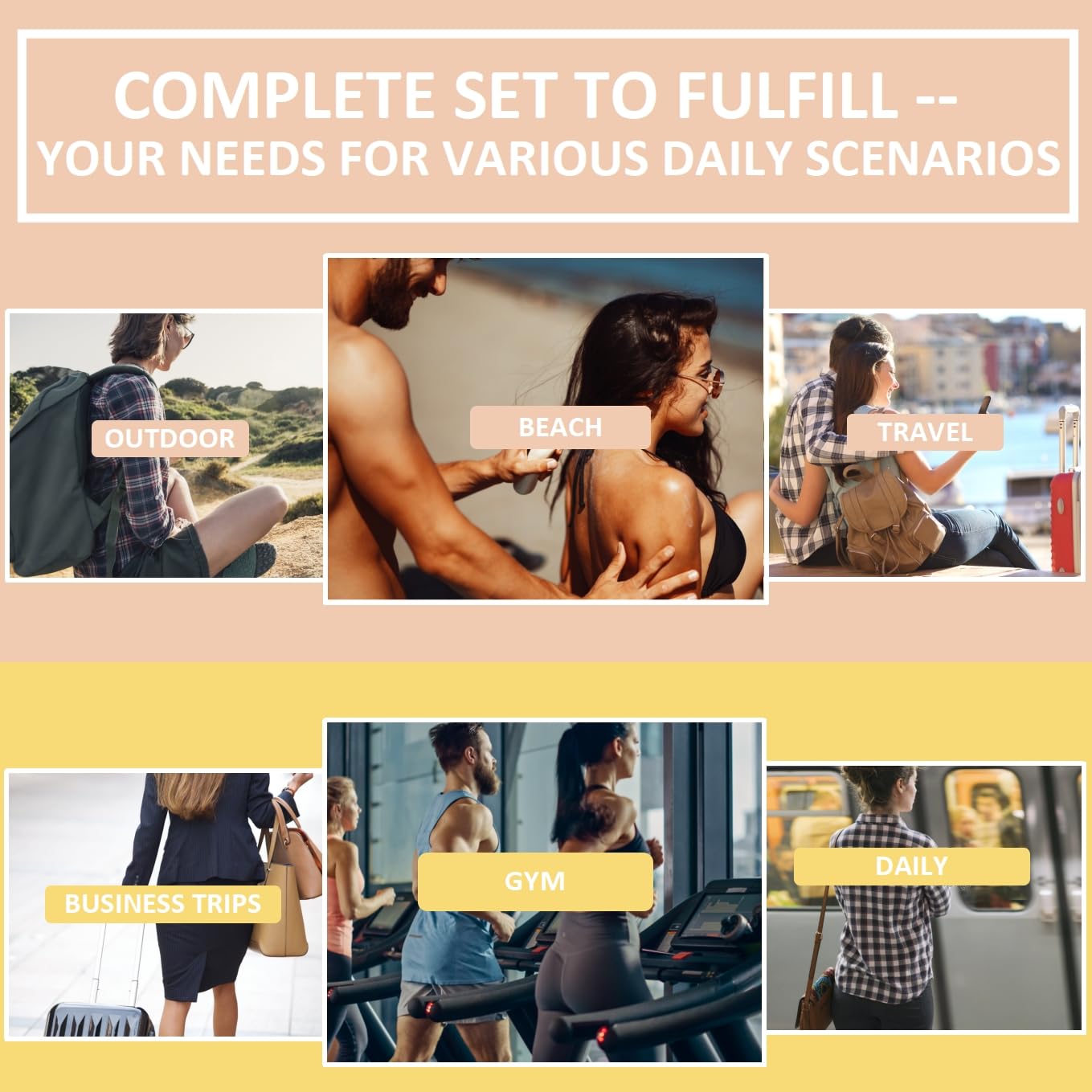 【SECURE AND TSA-APPROVED】The travel bottles and containers in this set have secure tops, ensuring they remain tightly sealed in your luggage during travel. Their size is perfect for hassle-free security checks at the airport, making your travel experience smoother.