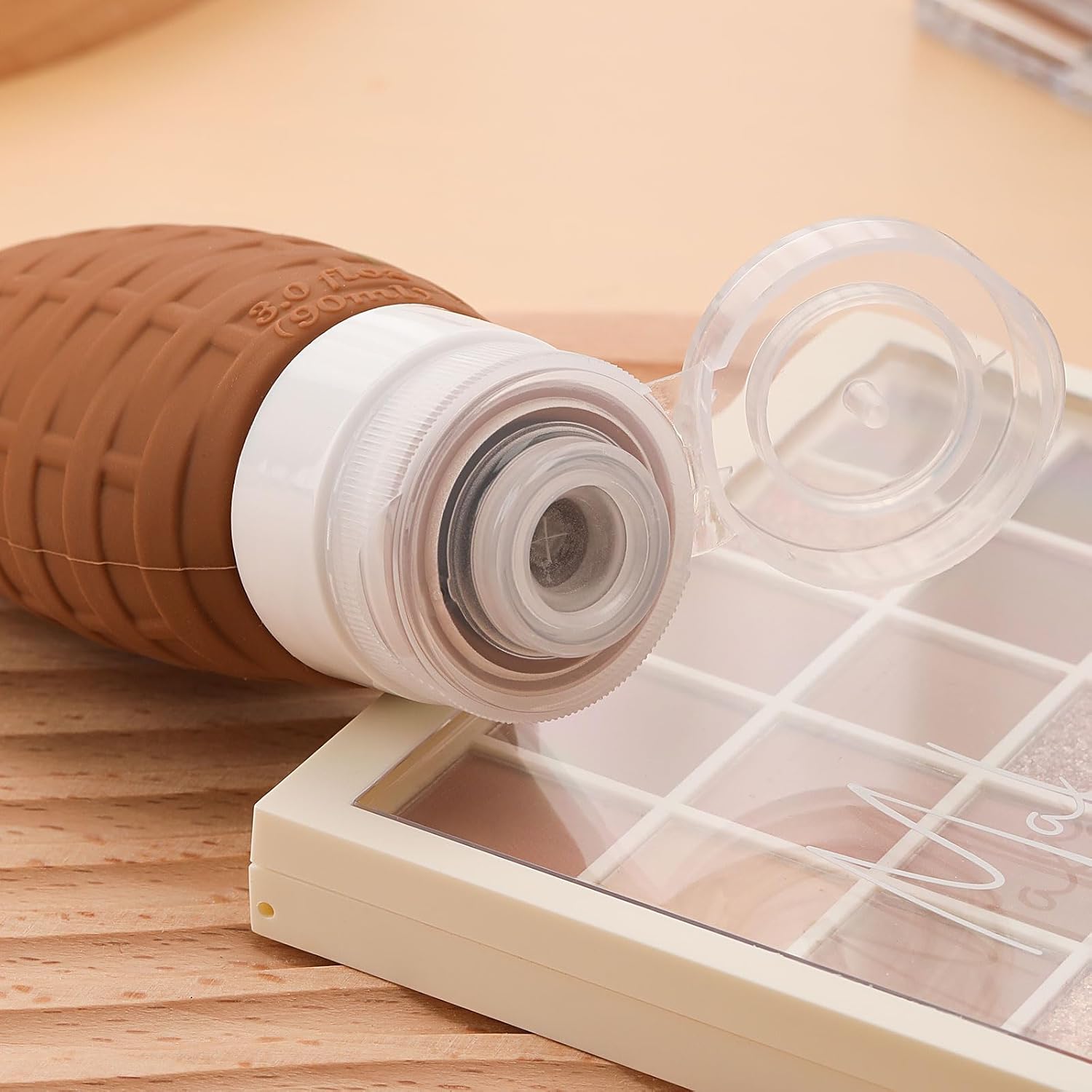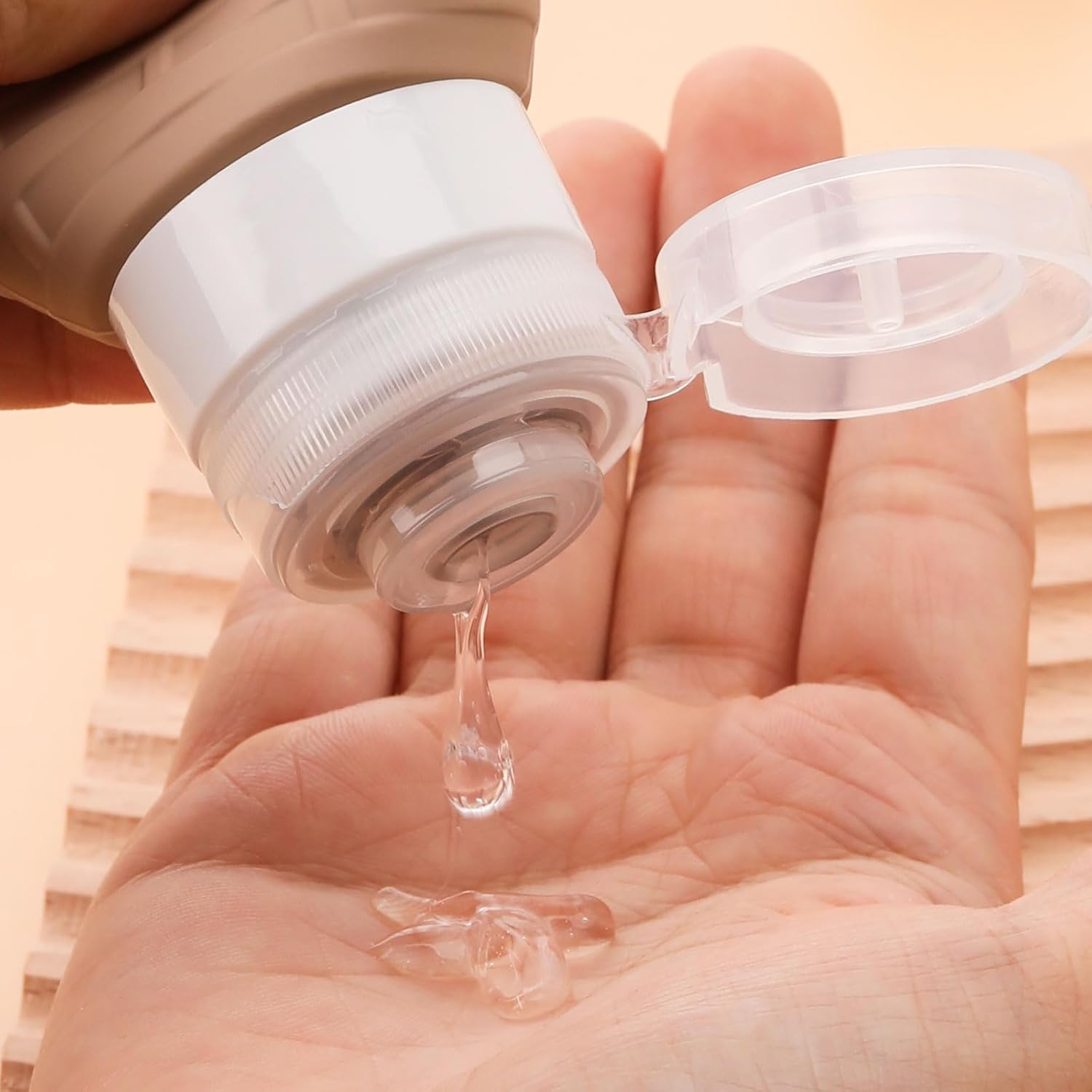 The thick but soft and refillable silicone tub makes it easy to squeeze the liquids out the bottles without wasting.