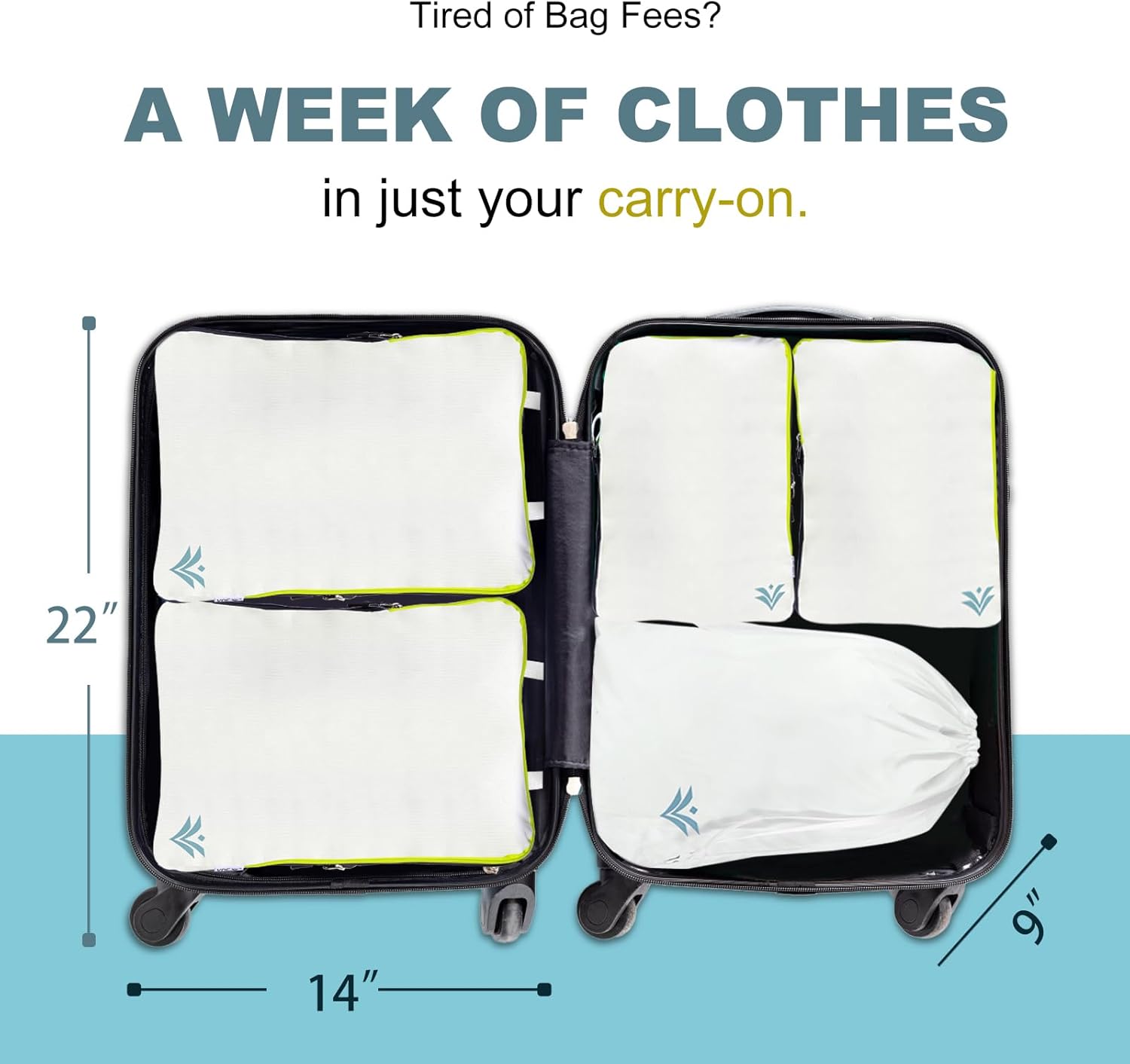 EASY COMPRESSION, CONVENIENT TRAVEL: Our compression packing cubes use compressed air to help you pack your clothes with ease, which is not only convenient and easy to use, but also saves space in your luggage. With no additional check-in fees, you can carry more items with you!